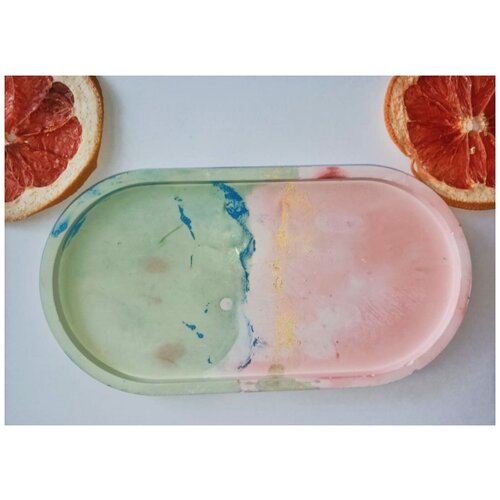 Гипсовый поднос для косметики, для ванны, для свеч розово-зеленый