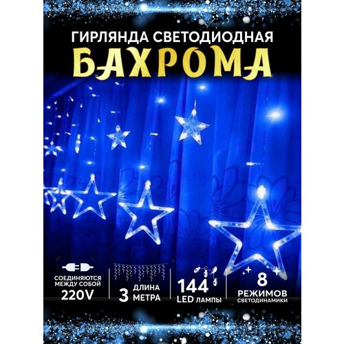Электрогирлянда интерьерная Бахрома Абелия Звезды 3 м*1 м 144 диода синяя от сети 220V