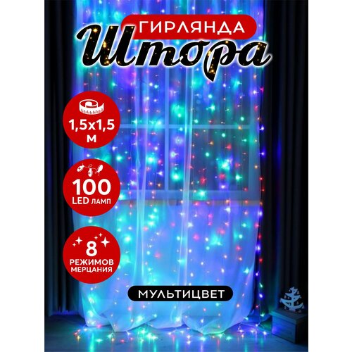 Гирлянда светодиодная штора занавес интерьерная 100 LED 1.5х1.5 м разноцветный
