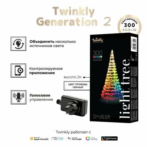 Гирлянда LED Twinkly Light tree RGBW 300, IP44, высота 2 м, Generation II (TWP300SPP-BEU)