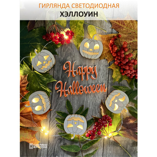 Интерьерная светодиодная гирлянда Тыквы для Хэллоуин из натурального дерева для украшения интерьера. Декорация Тыква не оставит ник...