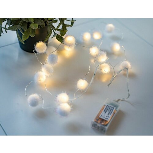 Электрогирлянда 20 тёплых белых LED-огней, 1.9+0.3 м, таймер, батарейки, Koopman International