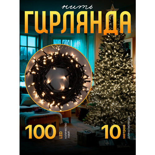 Гирлянда Luazon Lighting Нить 3556788, 1 шт. в наборе, 10 х 0.07 х 0.065 м, 0.065 х 0.07 м, 100 ламп, белый/черный провод