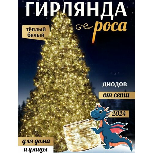 Гирлянда 100 метров нить капля росы\Светодиодная гирлянда теплый белый цвет\белый провод\ питание от сети 220В\ NewLight