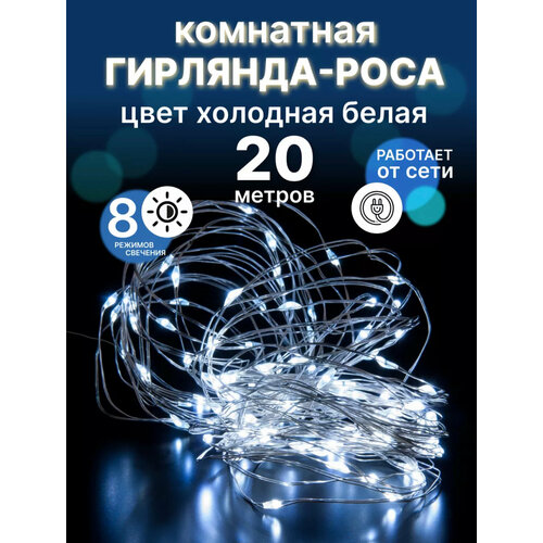Гирлянда роса 20м, холодный свет. гирлянда на елку, для декора. уличная гирлянда, гирлянда светодиодная, новогодняя гирлянда