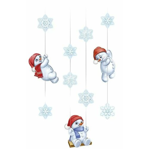 Растяжка новогодняя "Снеговики на качелях", украшение на новый год, 3 подвески