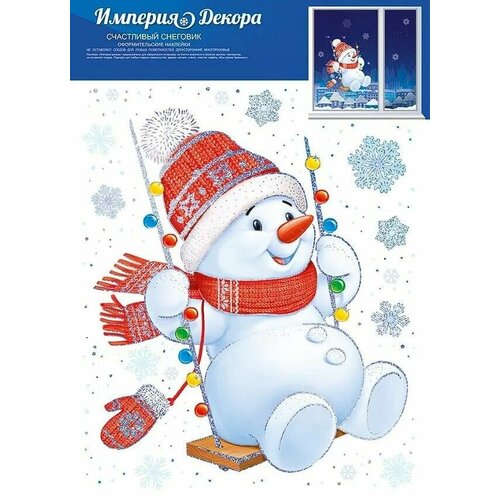 Новогодние наклейки на окно "Счастливый снеговик", двусторонние, размер листа 23,7х33,2 см
