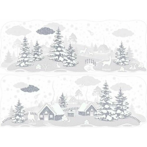 Новогодние наклейки на окно "Сказочная деревня" двусторонние, размер листа 95,4х16,6см