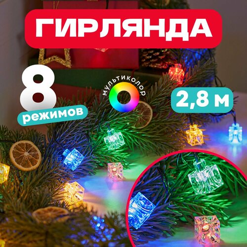 Гирлянда NEON-NIGHT Кубики, 1 шт. в наборе, 2.8 х 2.8 м, 20 ламп, разноцветный/зеленый провод