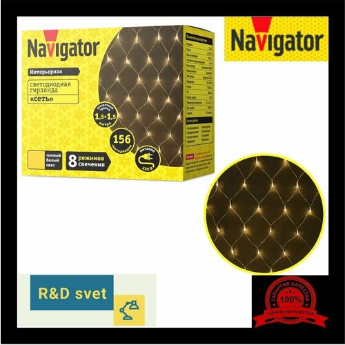 Электрогирлянда интерьерная Сетка Navigator Светодиодная 156 ламп, 1.5 м, питание От сети 220В, 1 шт