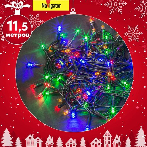 Гирлянда новогодняя на елку светодиодная (200 шт.), длина 11.5 м, разноцветная, провод, IP20, Navigator