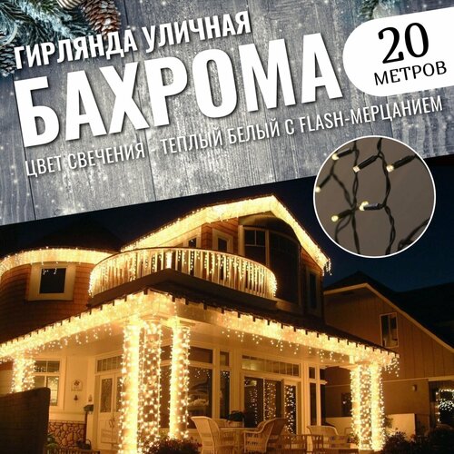 "Уличная гирлянда-бахрома" 20 метров для улицы и дома, разноцветная