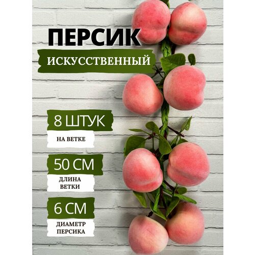 SunGrass / Искусственные фрукты для декора - персики, 8 шт на ветке / Муляж фруктов и овощей