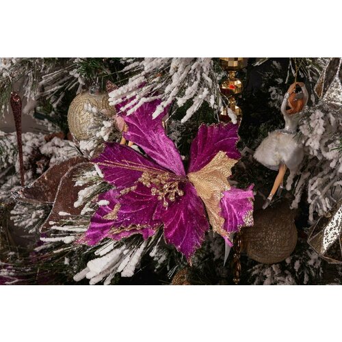 GOODWILL FL 18005 Пуансеттия цветок на клипсе бордовый с золотом 31 см