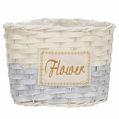 Кашпо из щепы , Д215 Ш155 В160, натуральный с голубым, 1797472