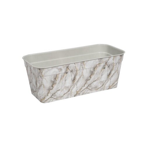 Балконный ящик для цветов Мрамор с дренажем / длина 42см / горшок цветочный / для рассады
