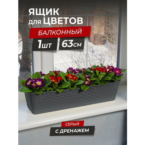 Балконный ящик для цветов Ротанг 63см с дренажной вкладкой, / горшок цветочный