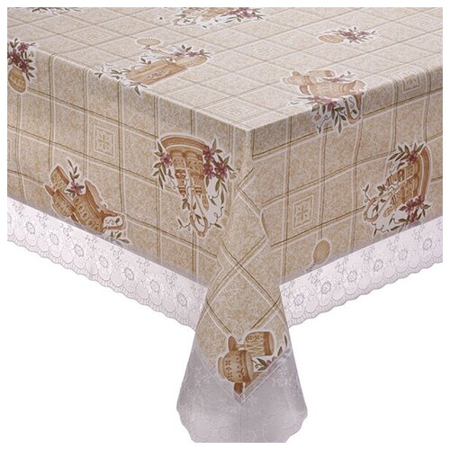 Скатерть клеенка влагоотталкивающая с ажурным краем Meiwa, 228 х152см, цвет бежевый, коричневый