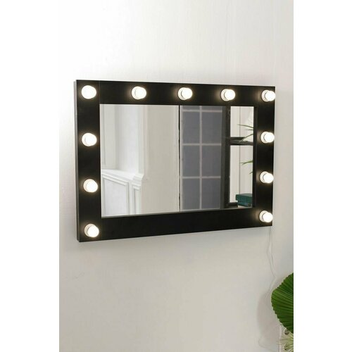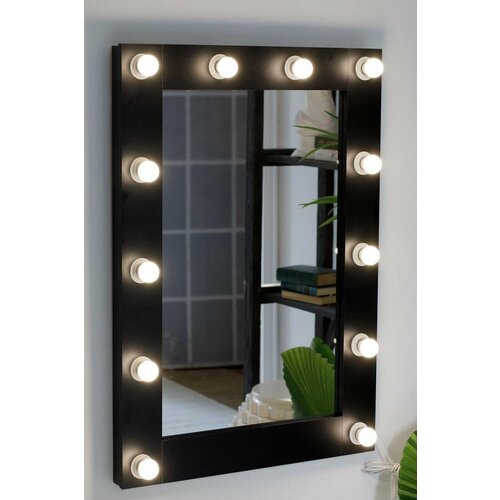 Гримерное зеркало GM Mirror 70см х 90см, чёрный, 12 ламп / косметическое зеркало