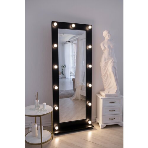 Гримерное зеркало GM Mirror, 80 см х 185 см на подставке с колесами, черный / косметическое зеркало