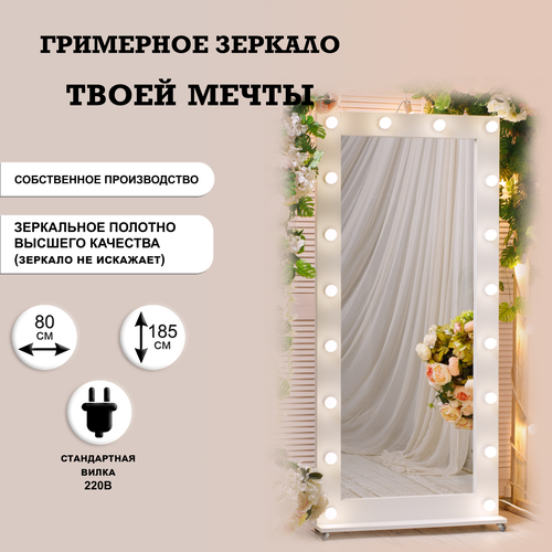 Гримерное зеркало GM Mirror, 80 см х 185 см на подставке с колесами, / косметическое зеркало