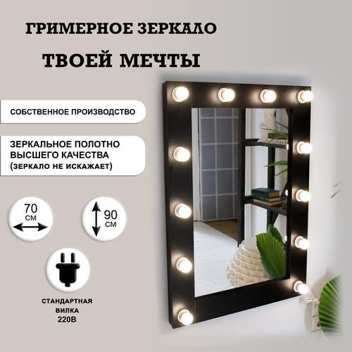 Гримерное зеркало GM Mirror, 70 см х 90 см, черный / косметическое зеркало