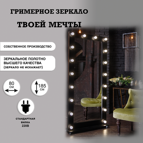 Гримерное зеркало GM Mirror, 80 см х 185 см на подставке с колесами, черный