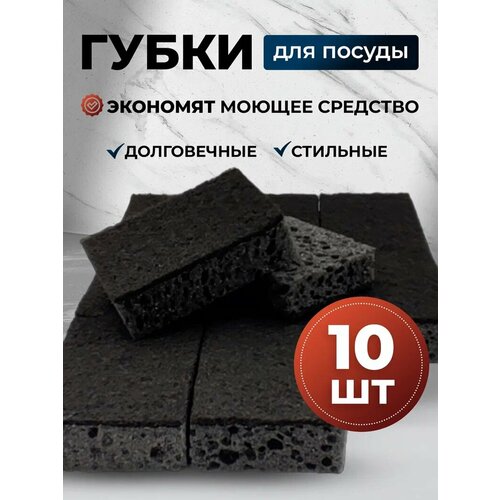 Губка для мытья посуды черная pro Cleanly, для уборки кухни и чистки ванны, крупнопористый поролон, большая универсальная хозяйственная, набор 10 шт