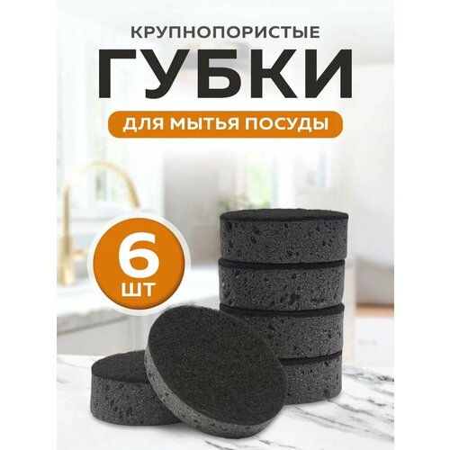 Губка для мытья посуды черная pro Cleanly овальная (круглая) большая хозяйственная для уборки кухни и чистки ванны, крупнопористый поролон, набор 6 шт