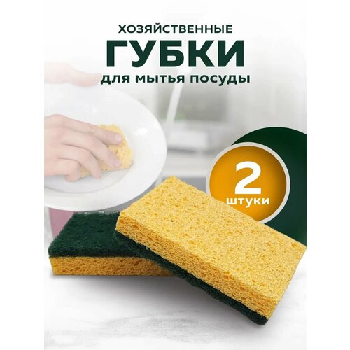 Целлюлозная губка для мытья посуды pro Cleanly, для уборки кухни и чистки ванны, крупнопористая целлюлоза, жесткая большая хозяйственная, набор 2 шт