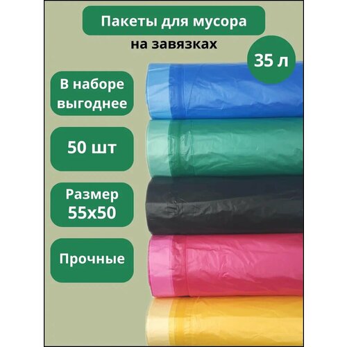 Мешки для сбора мусора 35 литров в рулоне PRO CLEANLY полиэтиленовые мусорные пакеты с ручками завязками для ведра, 50 штук, плотные