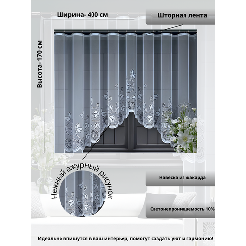 Размер гардины: 300х250 см (1 шт.)Материал гардины: Тюль