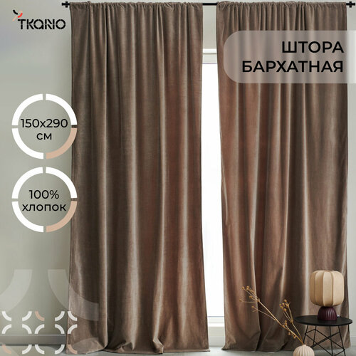 Штора 150х290 см для спальни гостиной из хлопкового бархата серого цвета Essential TK23-CUR0008