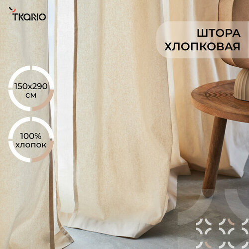 Штора из хлопка двойная Tkano, 150х290 см, бежевая, 1425684466