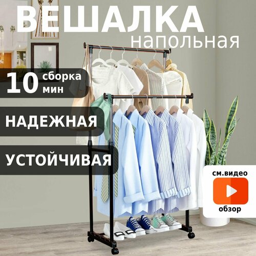 Двойная напольная вешалка подойдет как для хранения одежды, так и для удобного хранения сумок, рюкзаков и других аксессуаров. Нижня...
