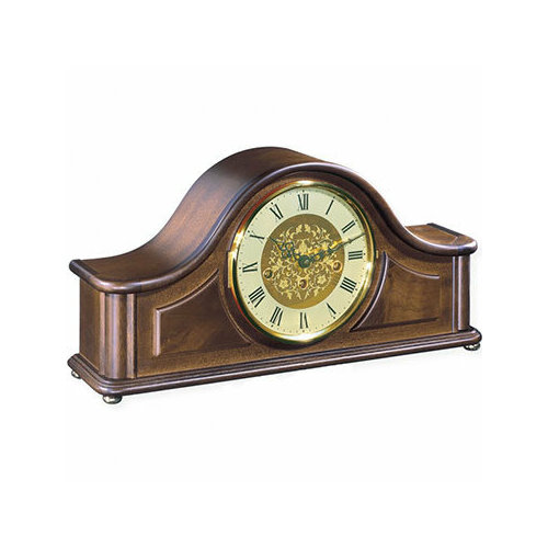 Большие настольные кварцевые часы MIRRON M4001C КБ/Металлический циферблат/Коричневый цвет корпуса/Часы с узорами/Белый (светлый) циферблат/Арабские цифры/Каминные часы