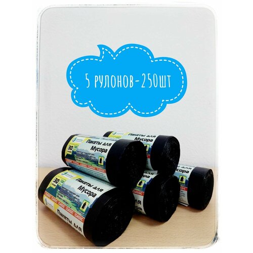 Мешки для мусора 30 л GreenClean черные (ПНД, 7 мкм, в рулоне 50 шт, 50х60 см) 5 рулонов/250шт