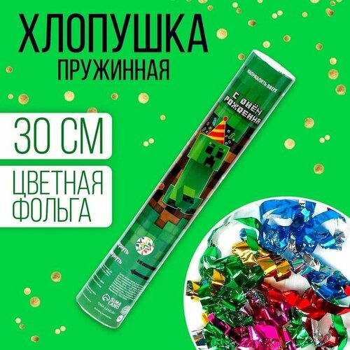 Страна Карнавалия Хлопушка пружинная «С днём рождения», звёздочки, конфетти, фольга-серпантин, 20 см