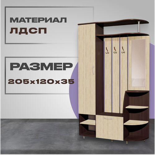 Прихожая Ксения-2 правая, 2050х1200х350, Венге/Дуб молочный 3635747