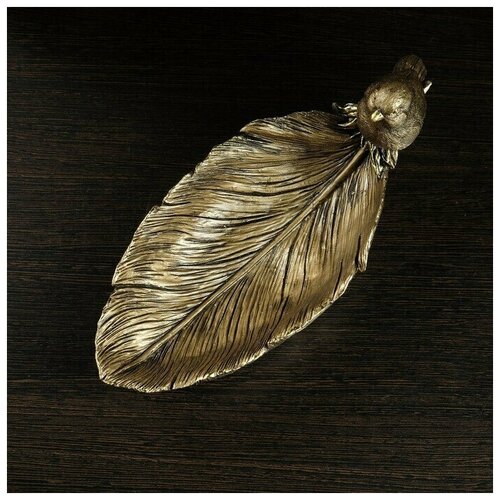 Подставка конфетница "Птичка на перышке" золото 25х10х10см