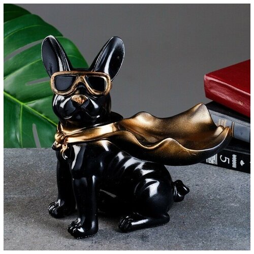 Подставка конфетница "Бульдог в плаще" черная, 23х20х13см