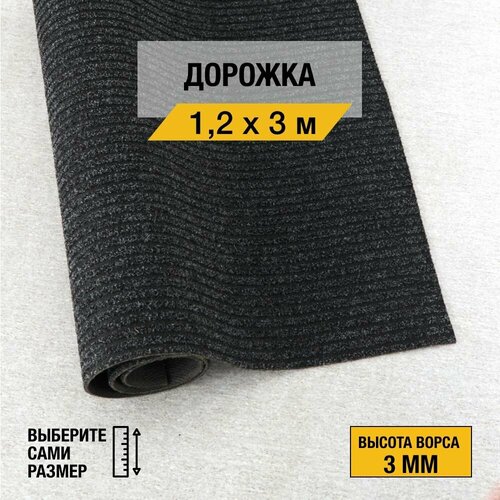 Иглопробивная дорожка для дома и офиса Orotex "фаворит" 1,2х10 м. черного цвета, на резиновой основе с высотой ворса 6мм.