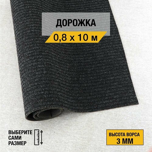 Иглопробивная дорожка для дома и офиса Orotex "фаворит" 0,8х4 м. черного цвета, на резиновой основе с высотой ворса 6мм.