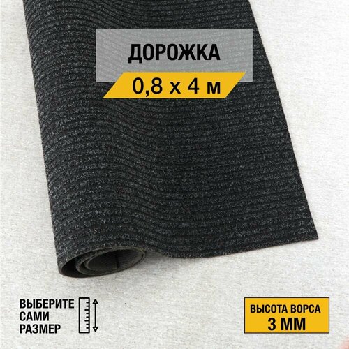 Иглопробивная дорожка для дома и офиса Orotex "Gin 2057" 0,8х4м. черного цвета, на резиновой основе с высотой ворса 3мм.