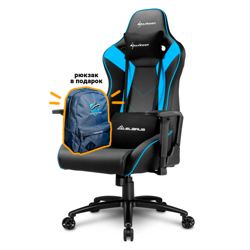 Игровое кресло Sharkoon Elbrus 3 чёрно-синее (синтетическая кожа, регулируемый угол наклона)