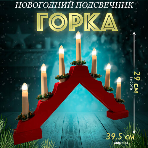Светильник новогодний "Рождественская Горка" деревянная, 7 свечей