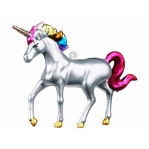 Елочная игрушка серебряный единорог, пластик, 15 см, подвеска, Goodwill