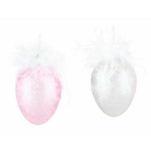 Подвесные украшения - яйца белецца КОН пьюме, стекло, 12 см, 2 шт, Goodwill PE50072