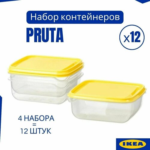 Икеа Набор контейнеров Прута, 14x14 см, желтый/прозрачный