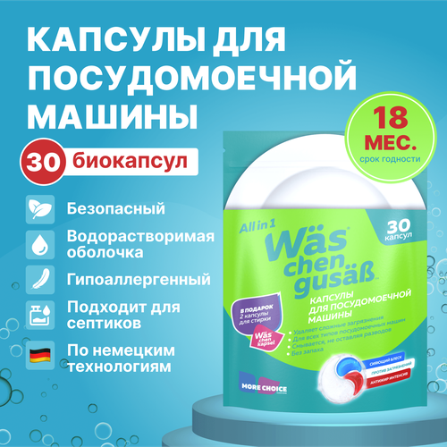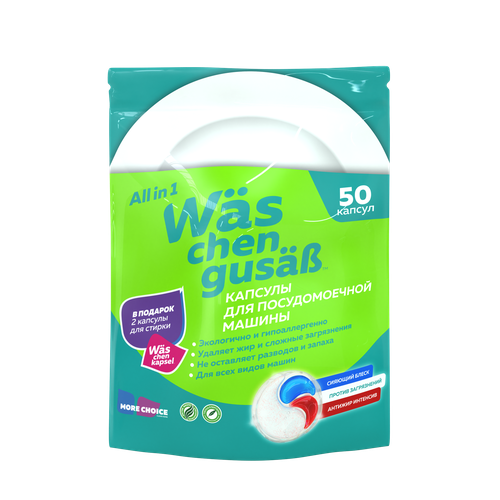 Капсулы для посудомоечной машины средство 3 в 1 50 шт Was / ВАС